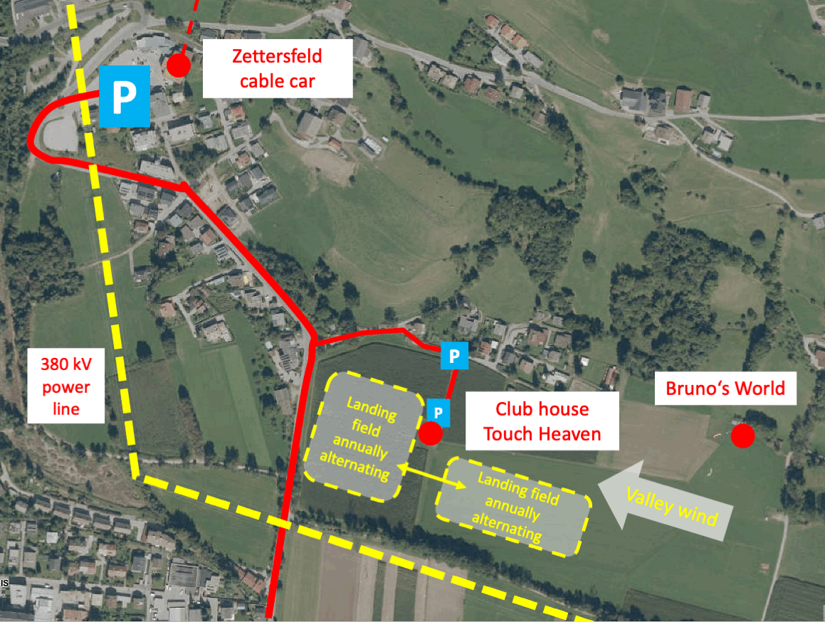Note: "Bruno's World," another paragliding community in Lienz, is located slightly east of our clubhouse. Therefore, the statement "We'll meet at the landing site" may be inaccurate.